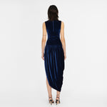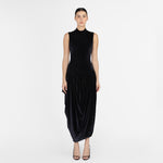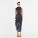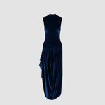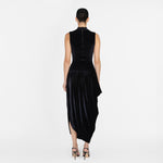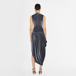 Con un cuello alto estilo tortuga que se ve acompañado de una delicada línea de botones forrados en la parte posterior, nuestro vestido Betancur presenta una silueta ajustada con una cintura baja que da paso a una falda asimétrica fruncida y drapeada lateralmente. Una abertura lateral revela una capa asimétrica interna, aportando un toque místico y garantizando máxima comodidad.