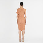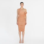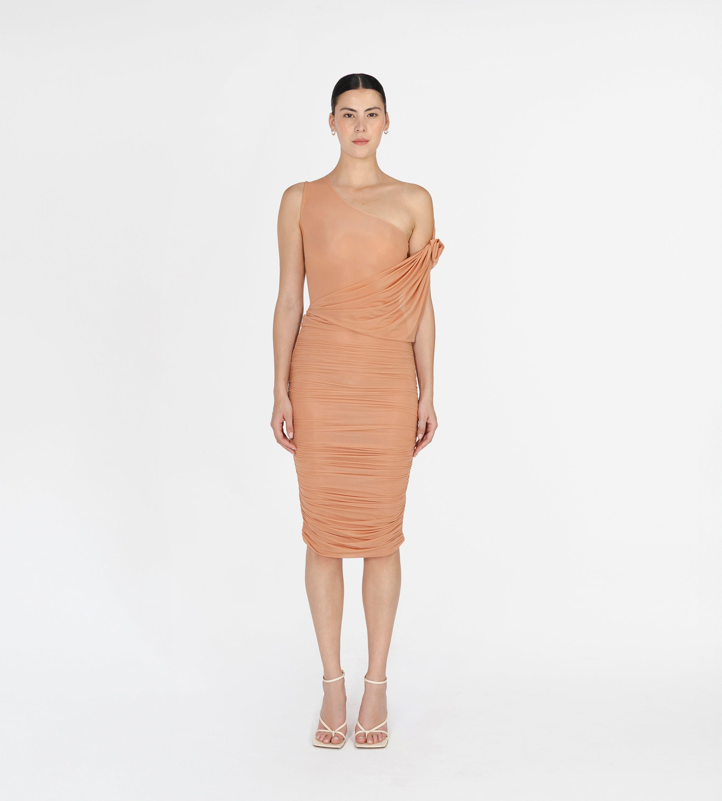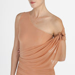Nuestro top asimétrico Caraballo irradia elegancia moderna con un diseño de un solo hombro y drapeado escultural. La silueta sigue la forma del cuerpo, y se ve realzado por un detalle fruncido que se recoge desde el hombro, envuelve el brazo y cae suavemente sobre la cintura, adornado con nuestro detalle insignia de flor en 3D.