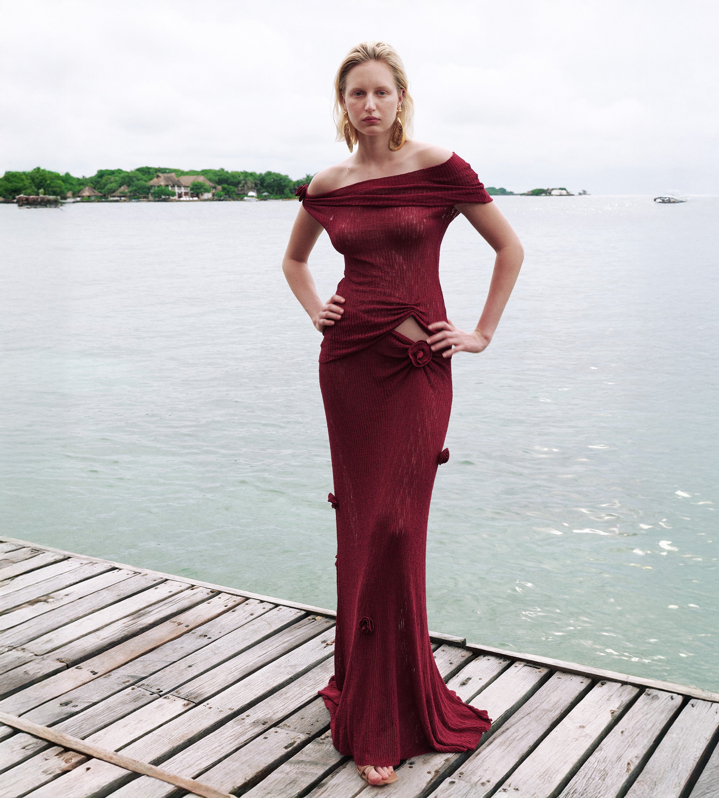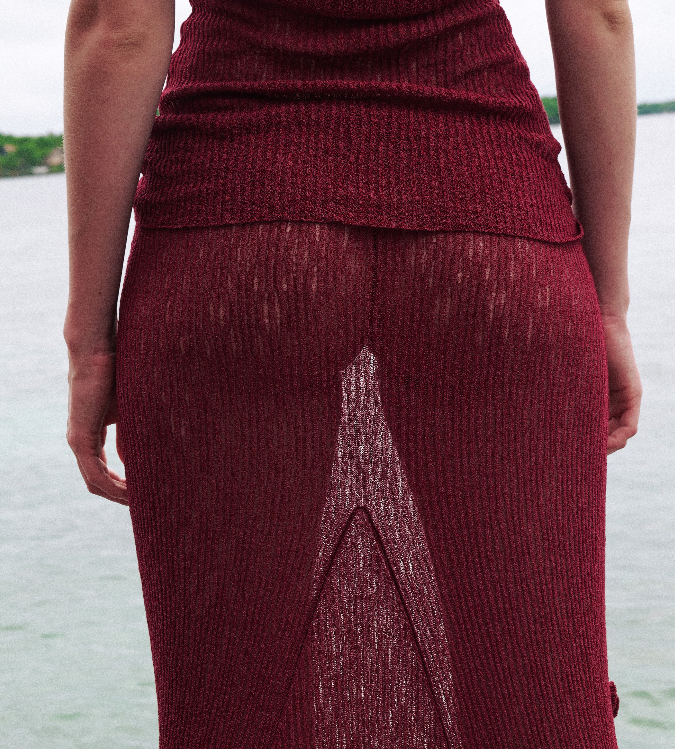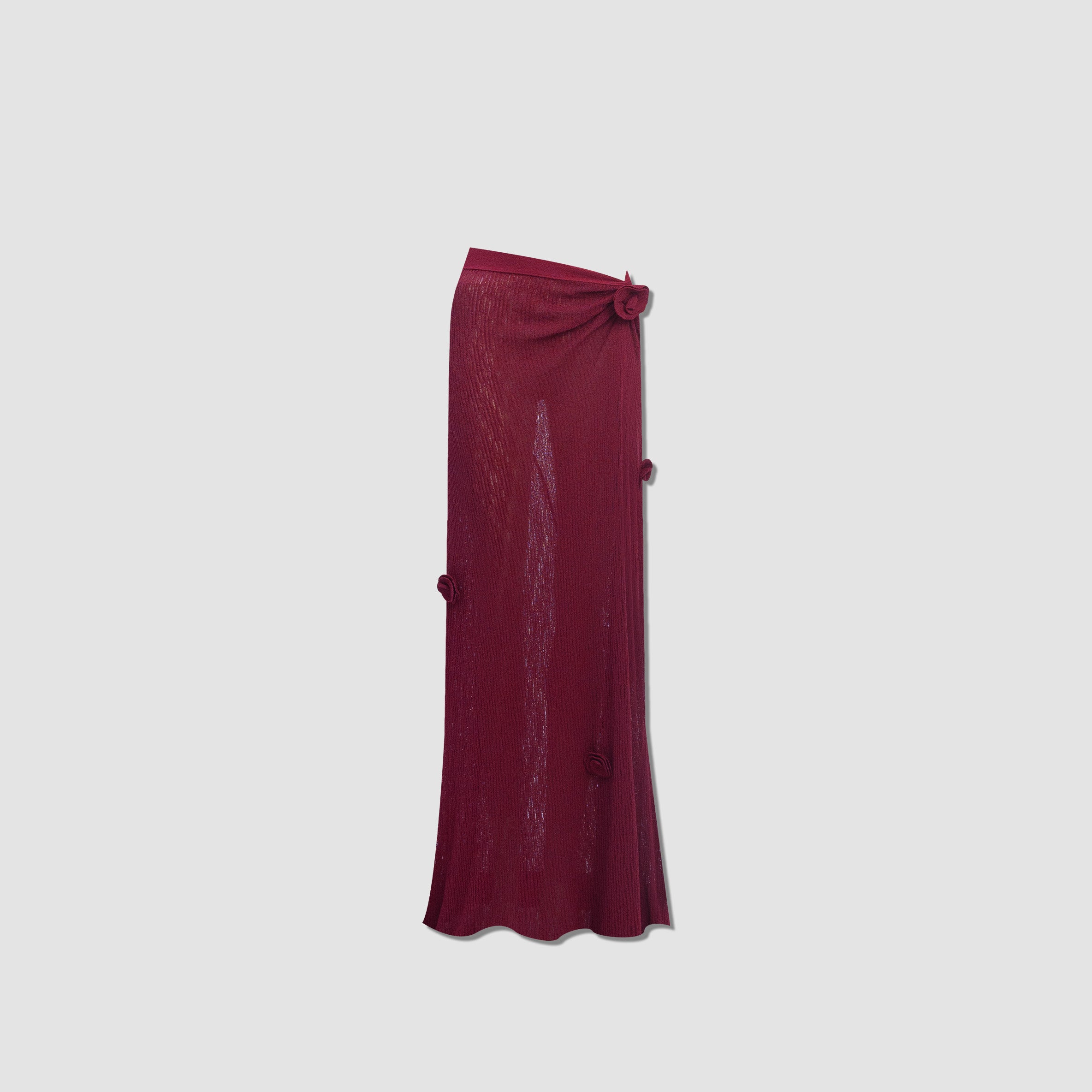 Nuestra falda larga Ceiba está confeccionada con precisión en un estructurado tejido de punto Italiano. Presenta una cintura asimétrica adornada con un delicado fruncido, que da paso a una silueta en A. Flores 3D estratégicamente ubicadas realzan este diseño cautivador.