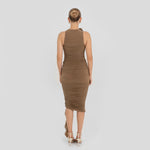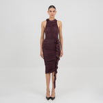posterior lleva un drapeado horizontal que evidencia el dobladillo asimétrico