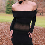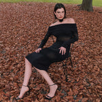 Nuestro vestido Galatea presenta un escote doble de hombros descubiertos que permite múltiples formas de uso, acompañado de mangas largas ajustadas y una silueta que sigue la forma del cuerpo. Confeccionado en un tejido de punto texturizado con efecto degradé, hecho en Italia, fusiona sofisticación con un toque contemporáneo.