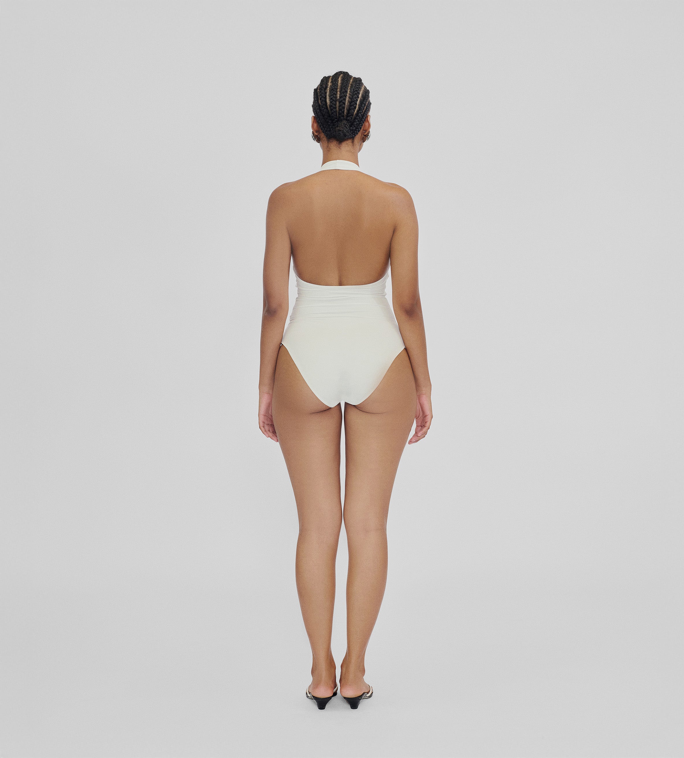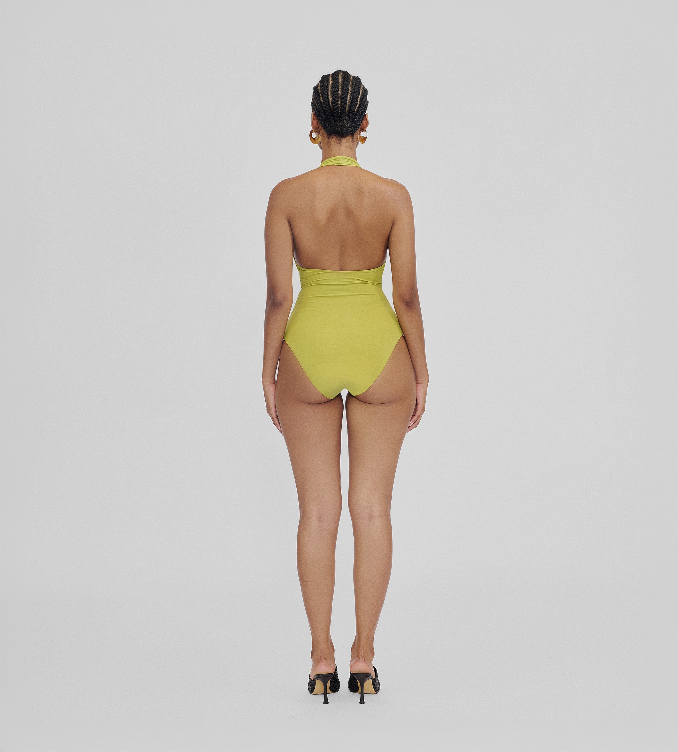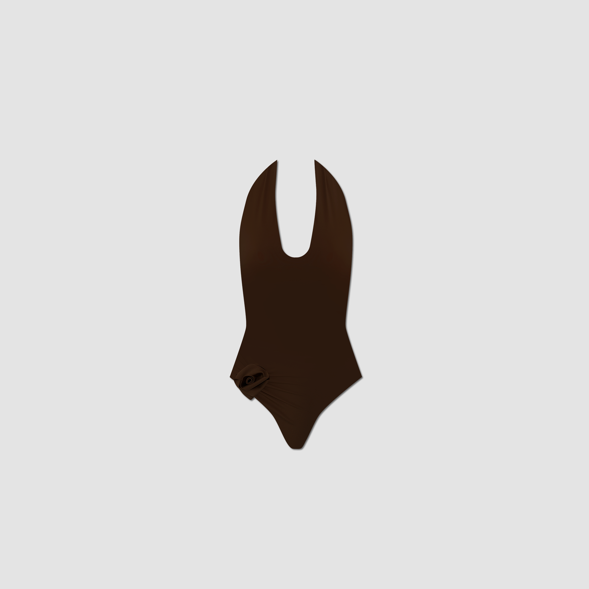 El traje de baño de una pieza Guayacán presenta un escote en V profundo y una sensual espalda descubierta. Su silueta acentúa elegantemente cada curva, mientras que un detalle fruncido en el costado, adornado con nuestro nuevo diseño floral en 3D, añade un toque de encanto a esta pieza.