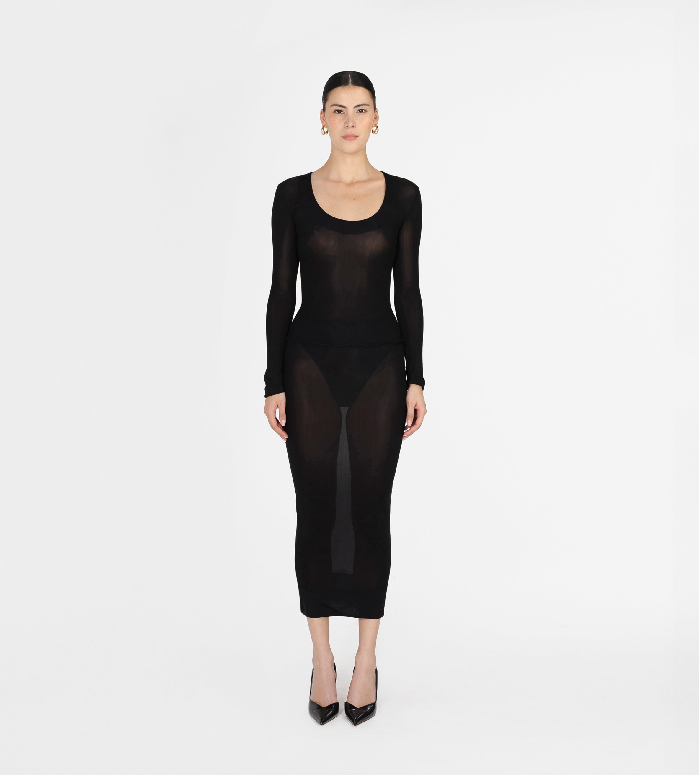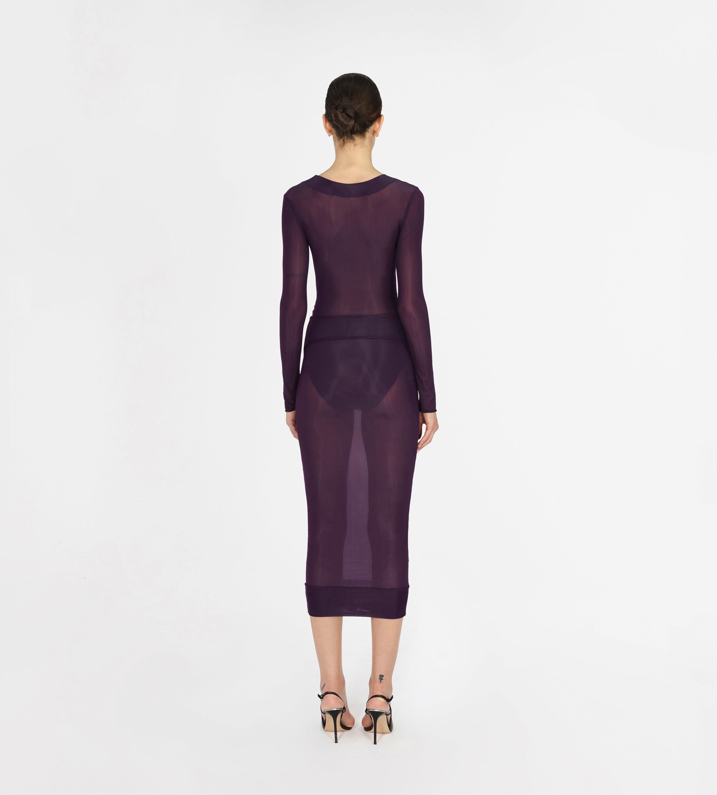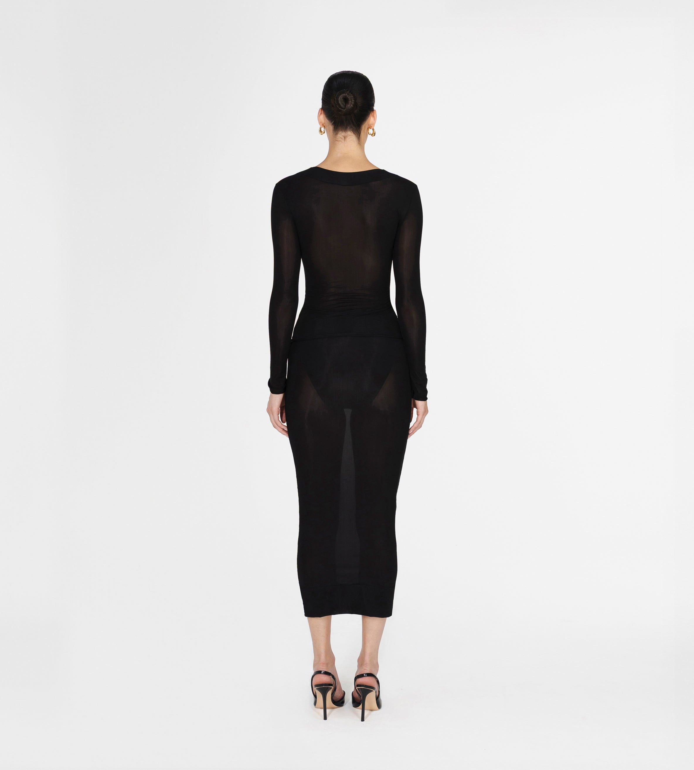Nuestra falda midi Jagua confeccionada en lycra semitransparente, presenta una capa interior tipo panty, su silueta estilo columna crea un diseño versátil y atemporal.