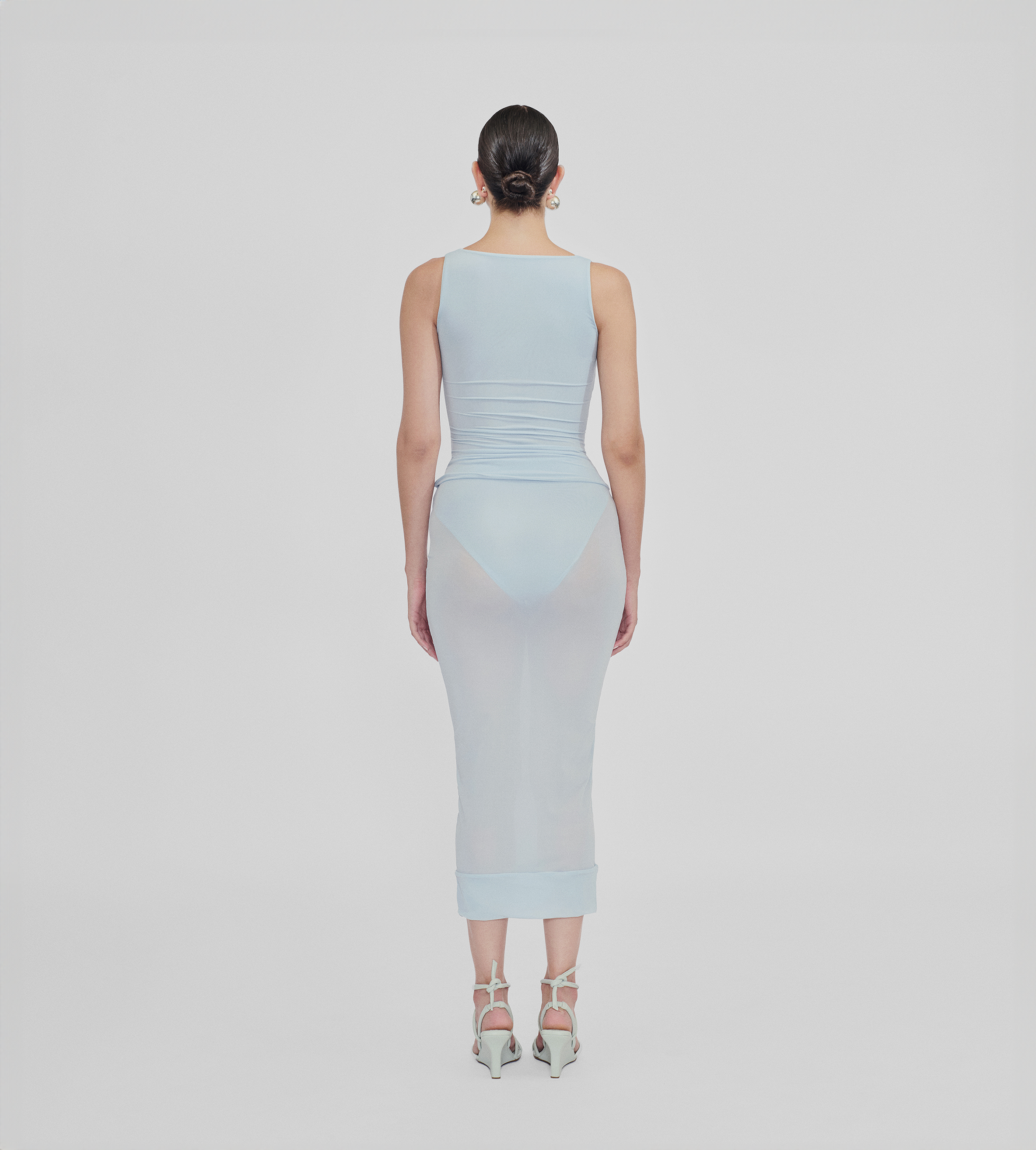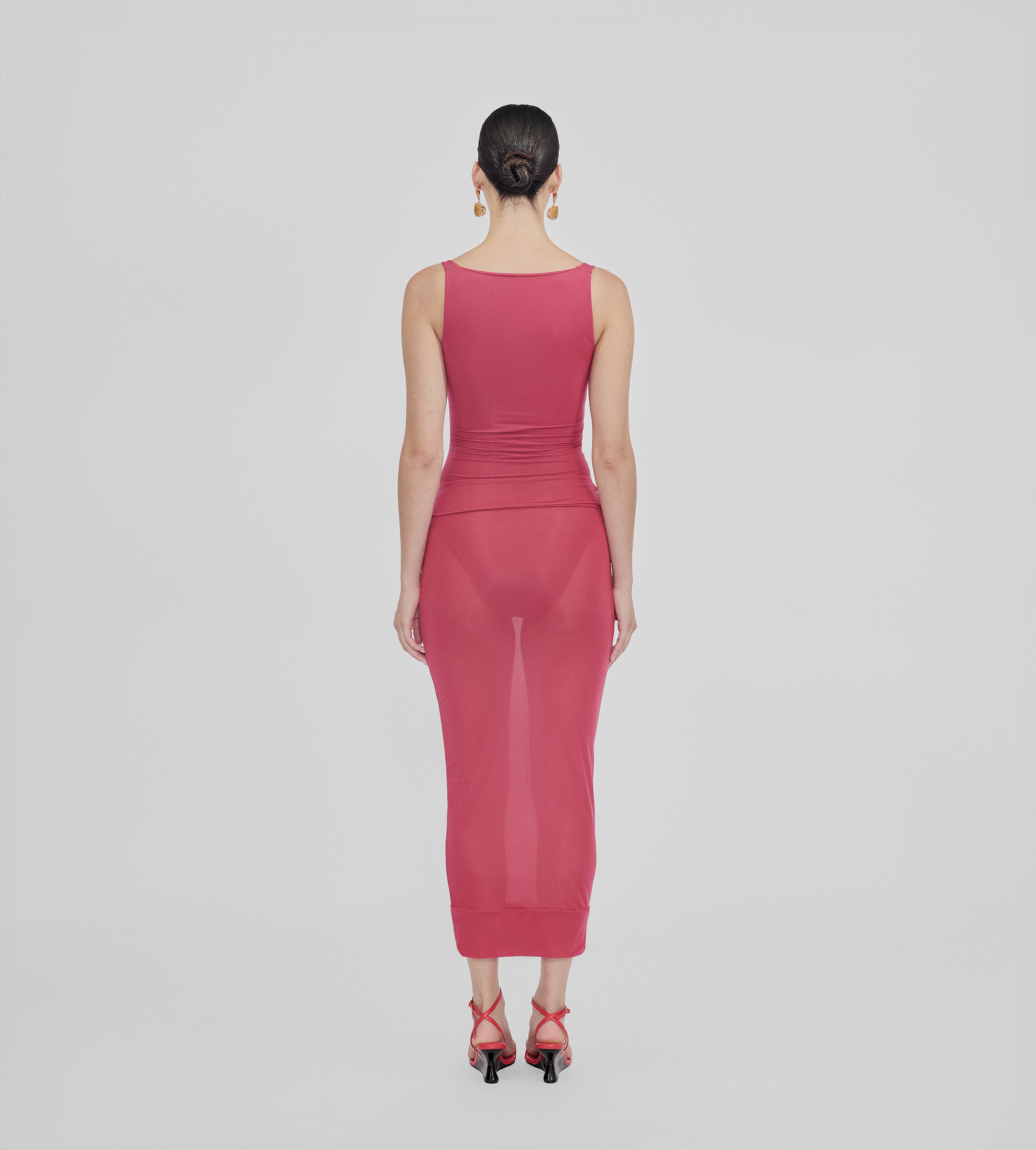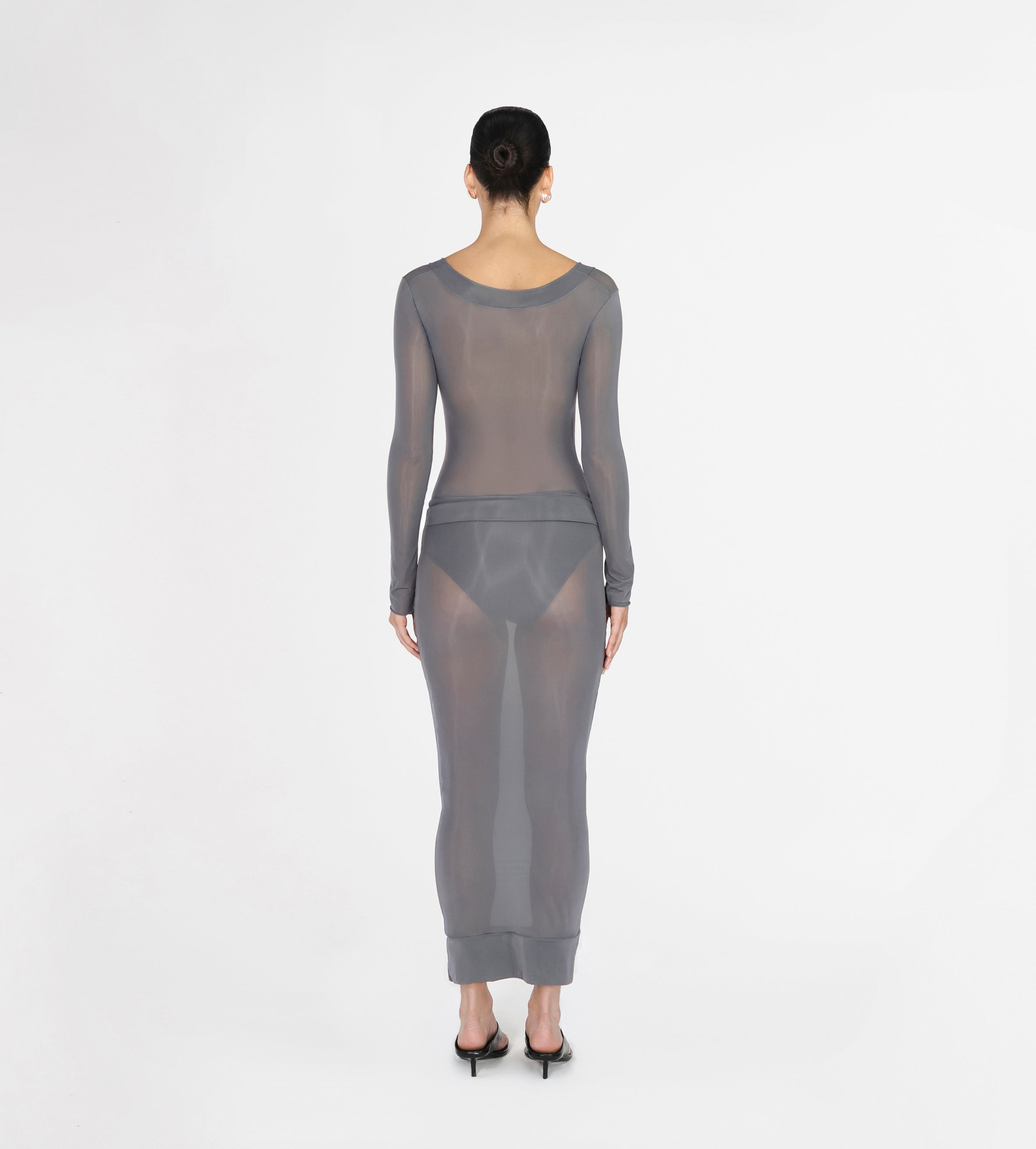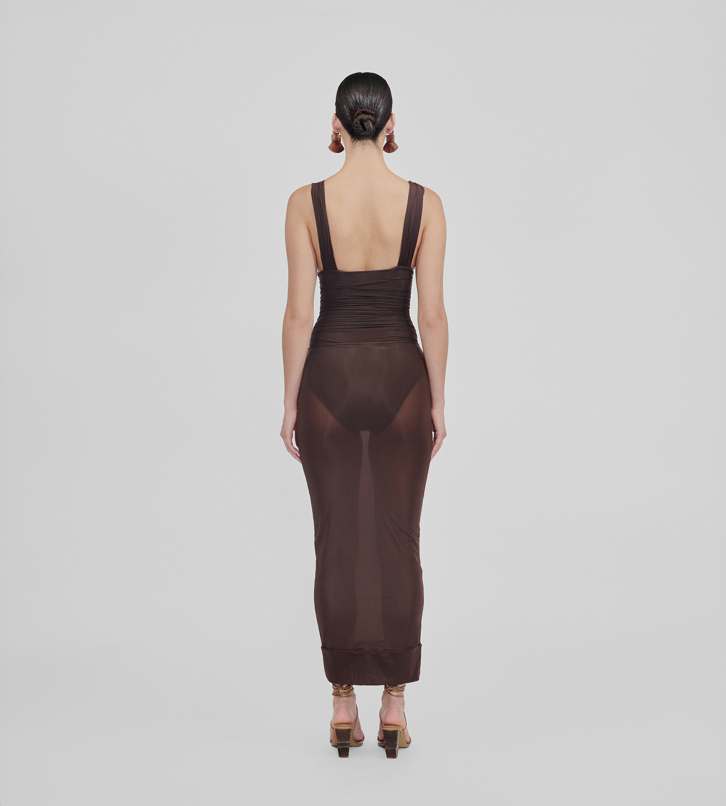 Nuestra falda midi Jagua confeccionada en lycra semitransparente, presenta una capa interior tipo panty, su silueta estilo columna crea un diseño versátil y atemporal.
