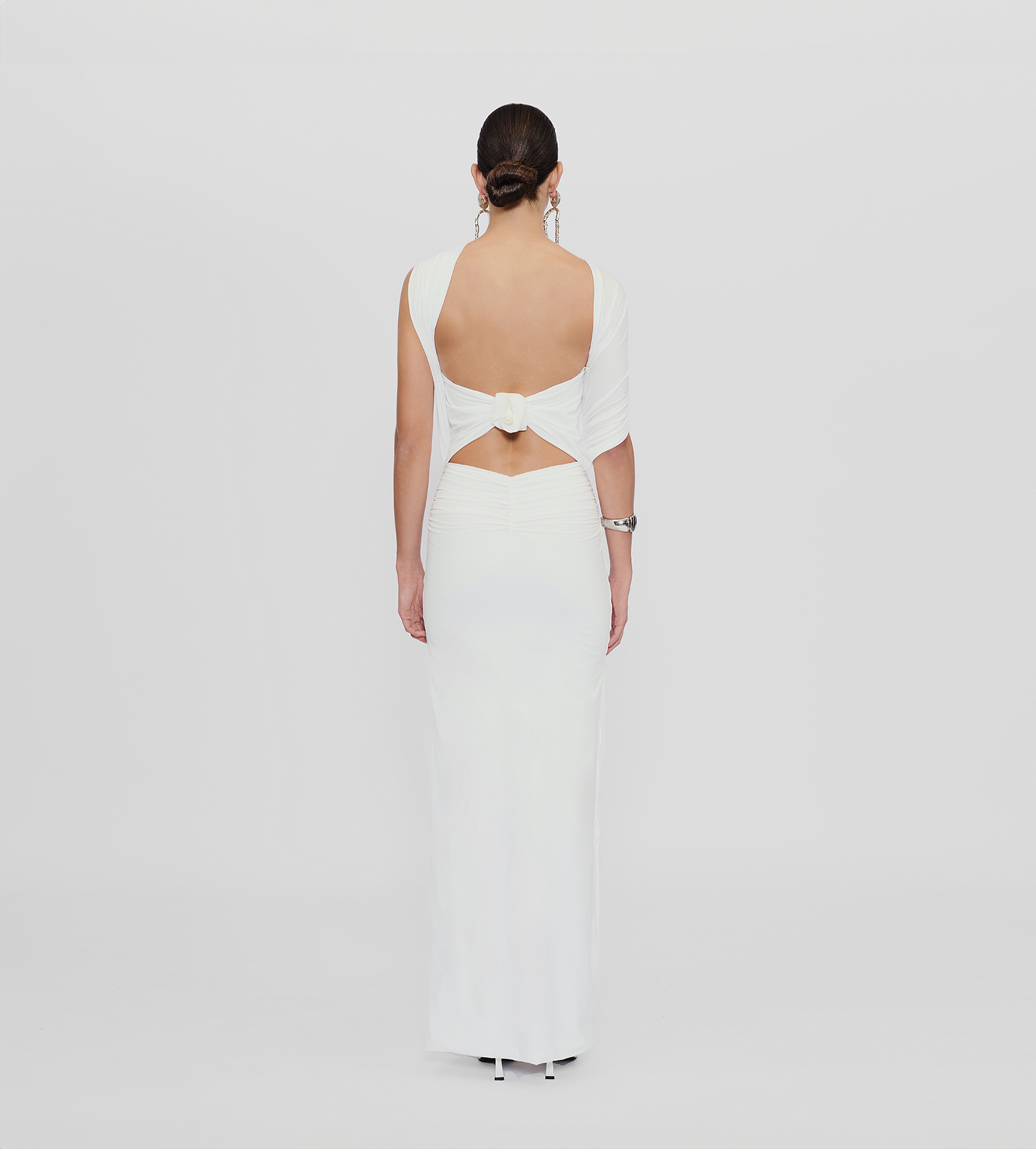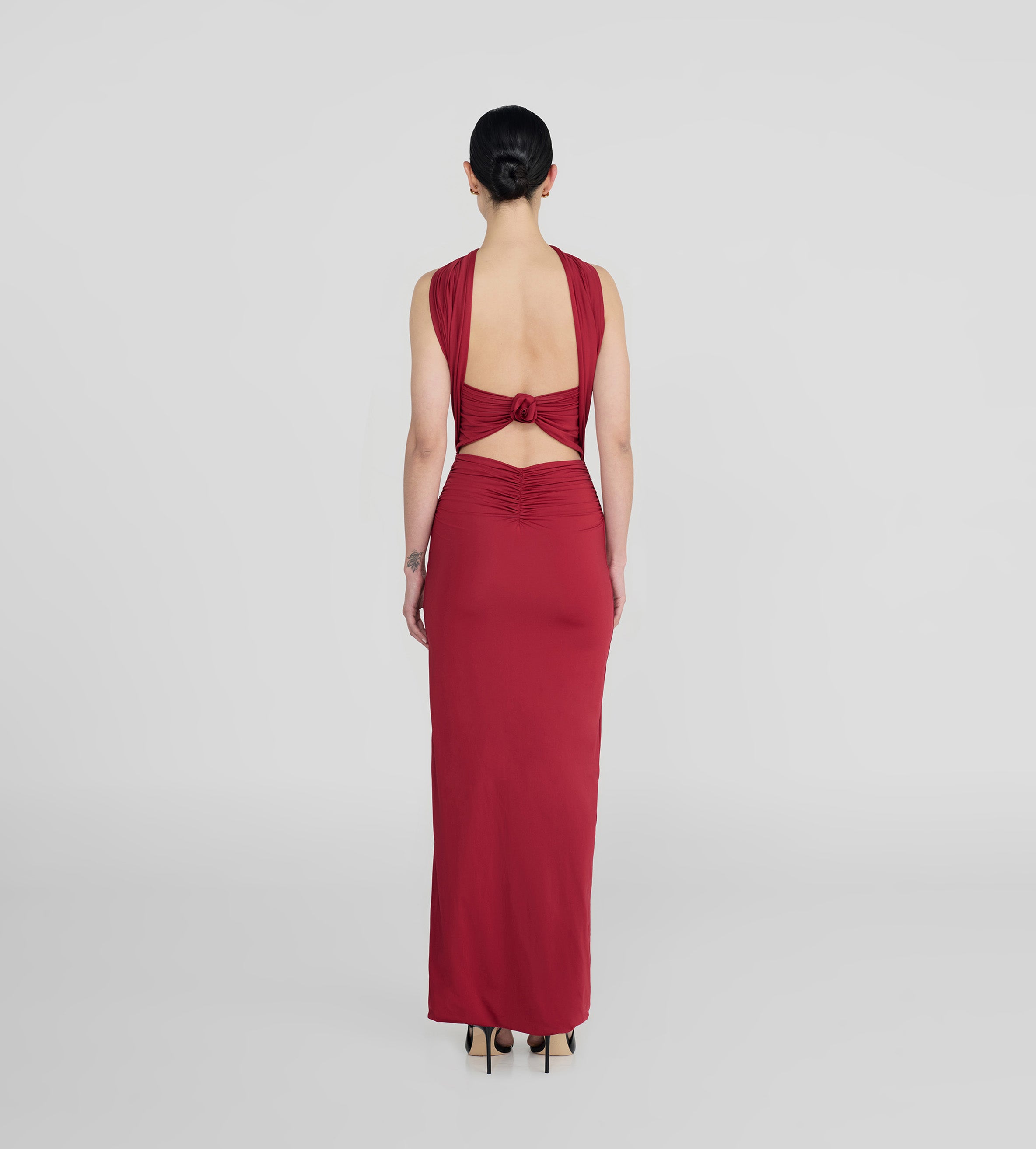 Versátil y divertido, nuestro vestido largo Mulett ofrece múltiples opciones de estilo. Lleva tu creatividad al siguiente nivel y muéstranos tu forma favorita de llevarlo. Con un escote recto, una silueta ajustada con fruncidos en el delantero, lazo/tiras multifuncionales, espalda con aberturas y detalles florales tridimensionales hechos a mano, te proponemos 4 opciones diferentes de cómo llevarlo; descubramos juntas muchas más !
