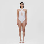 El enterizo Sole destaca un escote cruzado adornado con una delicada flor en 3D que recoge la tela en centro frente y enmarca un elegante escote ovalado. Sus tirantes fruncidos en la parte posterior aportan soporte y elegancia, equilibrando a la perfección su ajuste de segunda piel y creando una silueta armoniosa.
